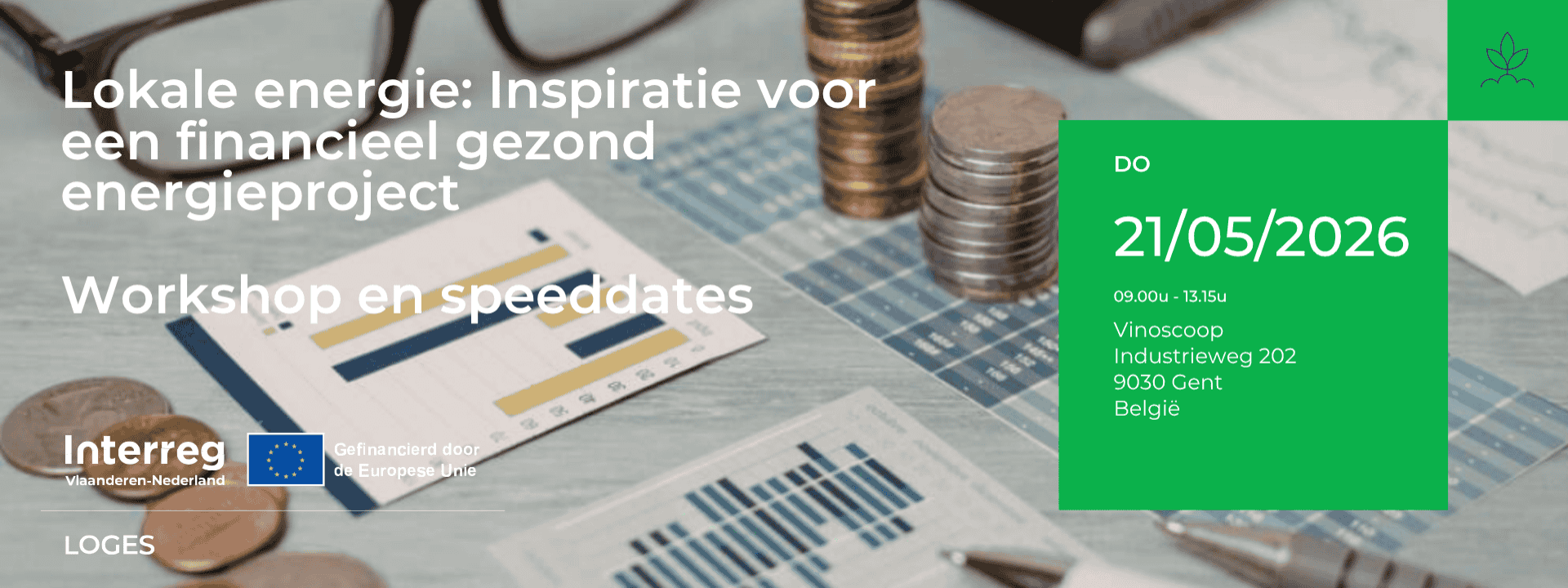 Op 21 mei in Gent kan je tijdens Flux50 Connect x Dag van de Energiegemeenschap deelnemen aan een gratis voormiddagworkshop in het kader van het Interreg Vlaanderen-Nederland project LOGES. Van 9u tot 13u15 staat één centrale vraag centraal: hoe maak je lokale energiesystemen financieel werkbaar?